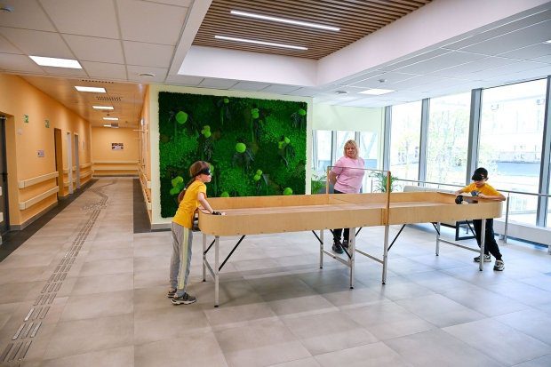 Фото В. Новикова. Пресс-служба Мэра и Правительства МосквыВ нем созданы все необходимые условия для занятий спортом и реабилитации людей с особенностями здоровья — незрячих и слабовидящих учащихся школы-интерната № 1.