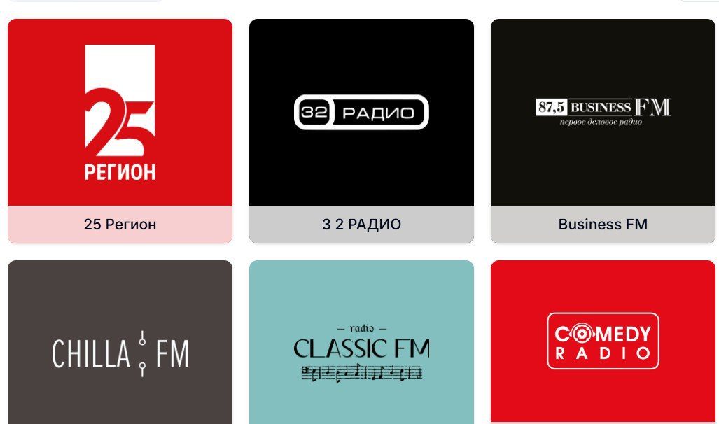 - В списке использованы иконки с логотипом и названием радиостанции, что существенно упрощает поиск нужного канала.