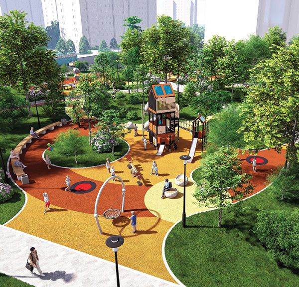 В центральной части народного парка в Ховрине появится большое игровое пространство для детей разных возрастов. В нем разместят многоуровневые комплексы в виде домов и паровоза с горками, батуты, балансиры, качели и карусели. Родители смогут отдохнуть или почитать книгу на полукруглых лавочках и удобных круглых скамейках.