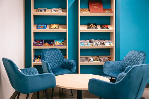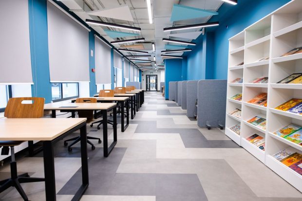 Школьная столовая стала обеденным залом, похожим на модное кафе, а вместо традиционной библиотеки открылась современная медиатека с удобными местами для чтения, групповой и индивидуальной работы.