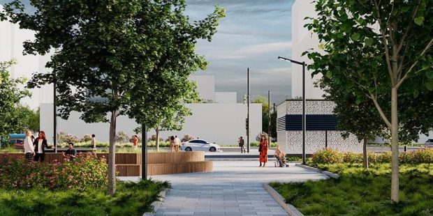 Проектное решениеОсобое внимание уделят созданию пешеходных тротуаров с освещением и скамейками, а вдоль улицы Демьяна Бедного появятся велодорожки.