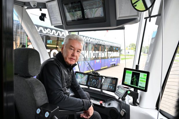 Сергей Собянин запустил первый в России беспилотный трамвай с пассажирами