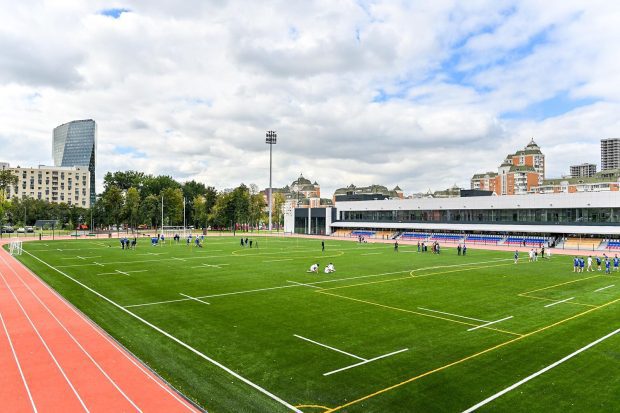 Там, где было старое футбольное поле, появилась универсальная игровая арена с искусственной травой и подогревом. Она подойдет не только для футбола, но и для регби.