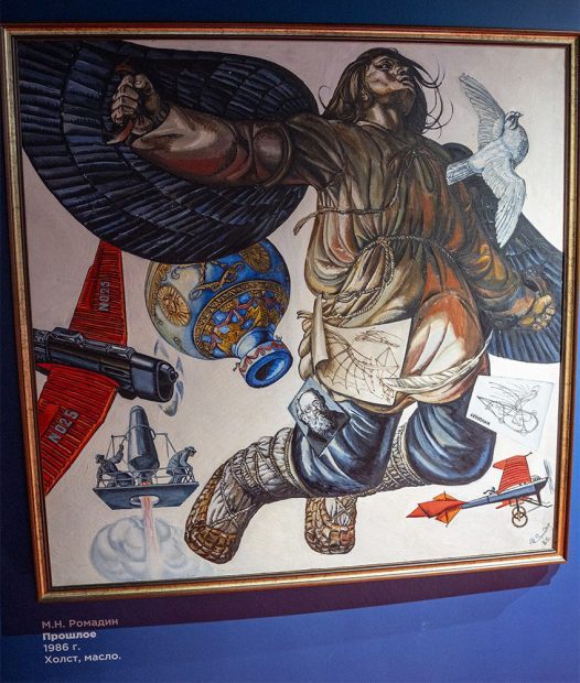 Кроме того, до конца года в зале «Космический дом на орбите» представлена редкая группа предметов, хранящихся в фондах, — триптих выдающегося художника и иллюстратора Михаила Ромадина «Прошлое», «Настоящее», «Будущее» (1986). Первая часть, «Прошлое», поступила в коллекцию музея из Государственного музейно-выставочного центра «Росизо» в 1987 году, две другие — в 1994-м.