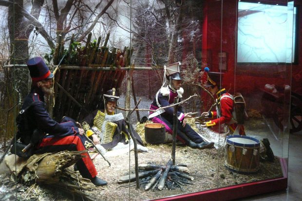 В одном из залов — реконструкция партизанского бивака. Здесь оживает история, описанная Денисом Давыдовым. «В один из дней к ним в лагерь под Малоярославцем прибился голодный, оборванный 15-летний французский барабанщик Винсент Бод (Vincent Bode)», — продолжает Виктория Павленко. Мальчик дошел с отрядом Давыдова до Парижа. Там возмужавшего юношу вернули родителям.