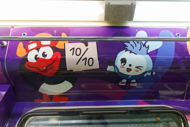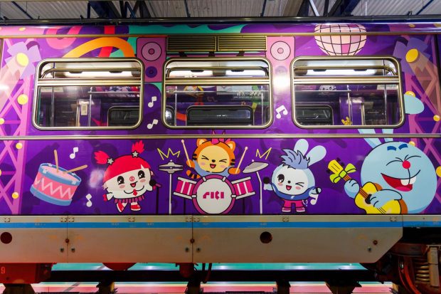 Поезд оформили в ярких цветах, что привлечет внимание юных пассажиров. Внутри можно встретить персонажей из популярных мультсериалов группы компаний «Рики», таких как «Смешарики», «Фиксики», «Детектив Финник», «Малышарики», «Бодо Бородо» и других.