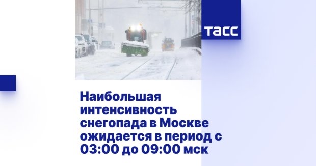 . Наибольшая интенсивность ожидаемого в Москве и Подмосковье сильного снегопада ожидается предстоящей ночью и утром в период с 03:00 до 09:00 мск. Об этом сообщили ТАСС в Гидрометцентре РФ, сославшись на последние прогностические данные.