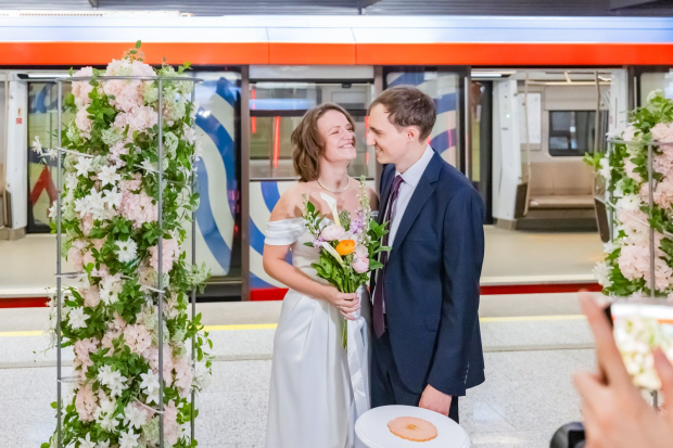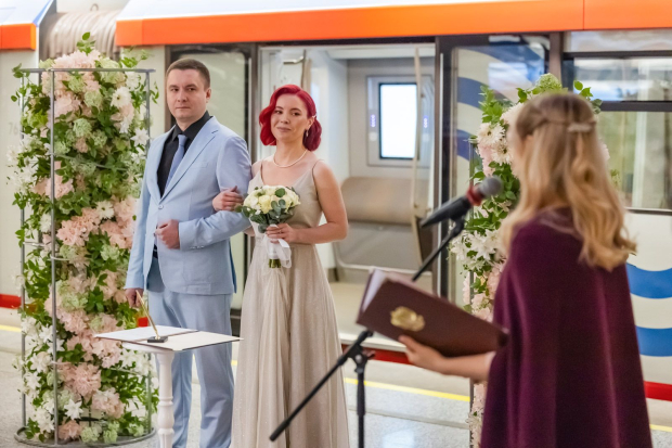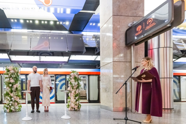 Сотрудники столичных загсов впервые провели четыре церемонии бракосочетания на станции «Сокольники» Большой кольцевой линии (БКЛ) метро.