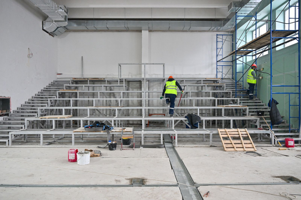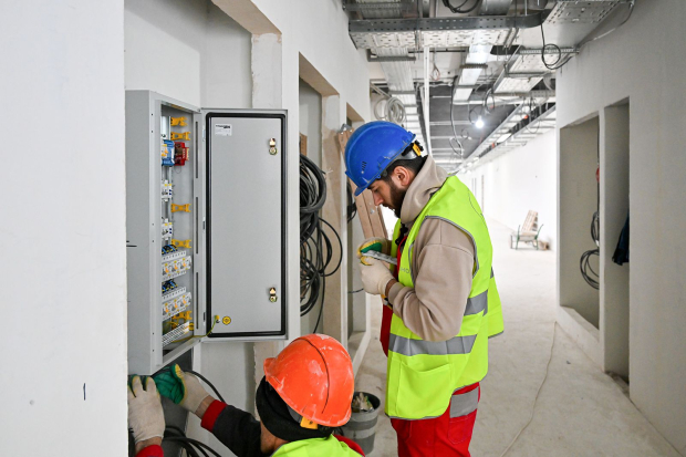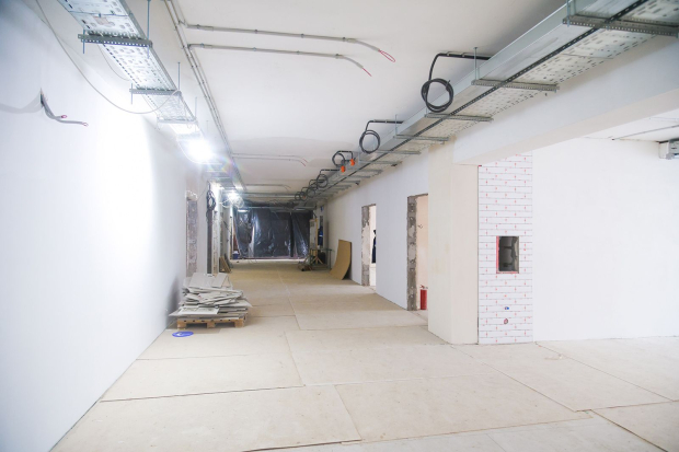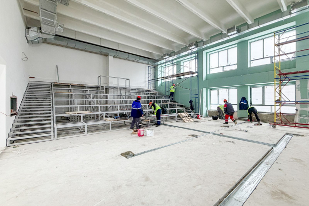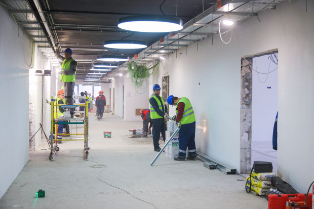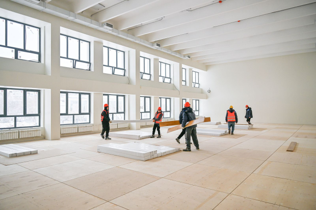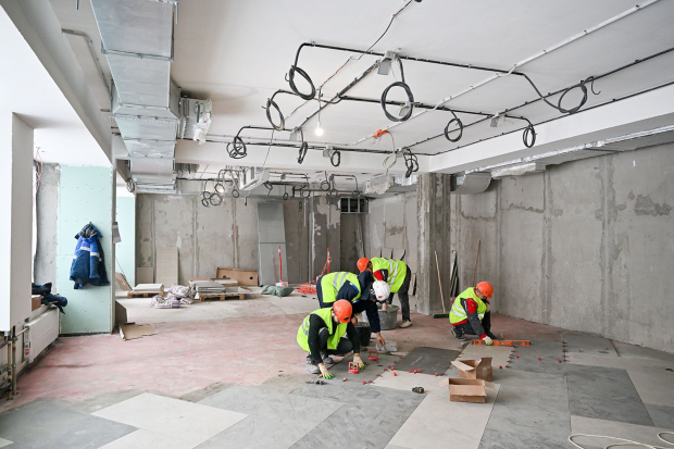 Сейчас строители монтируют внутренние инженерные сети. Они полностью меняют системы вентиляции и кондиционирования, водоснабжения и водоотведения, электроснабжения, а также слаботочные сети. Вместо чугунных батарей устанавливают энергоэффективные радиаторы, которые позволяют регулировать температуру в помещении. В кабинетах прокладывают современную вентиляцию, проводной интернет и вайфай, а также слаботочные сети для систем пожарной безопасности, видеонаблюдения, контроля и управления доступом.