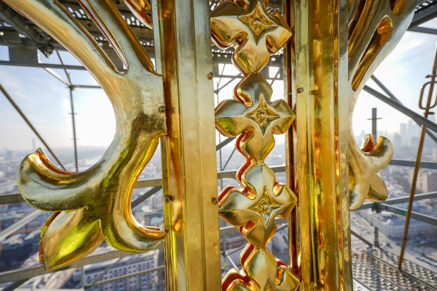 «Сейчас мы приступили к куполам, крестам. Проводим скрупулезную работу по их реставрации. На самом деле издалека не видно, но там были также серьезные проблемы. Нам пришлось заменить порядка 500 деталей декоративных элементов из литой бронзы. Каждый из элементов весит около 50 килограммов — от 20 до 70. 500 элементов! Более мелких элементов — около 40 тысяч. Это такая большая работа, но я уверен, что кресты на храме засияют своей прежней красотой к Светлой Пасхе», — пояснил Сергей Собянин.